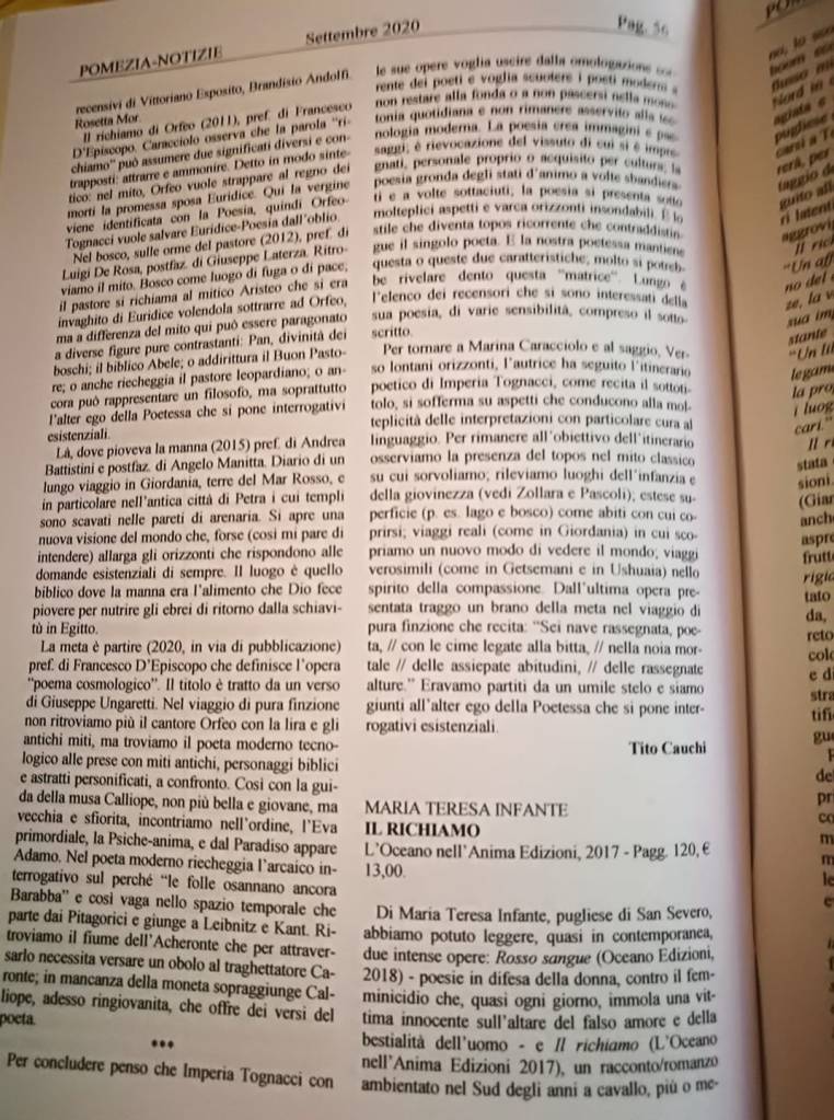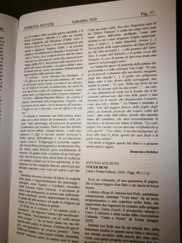 2 pensieri riguardo “IL RICHIAMO su “Pomezia-Notizie” a cura del dott. Domenico Defelice, fondatore e Direttore responsabile della Rubrica letteraria