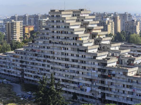Le “Vele” sono costruzioni che grondano cemento di dubbia qualità, frutto della speculazione edilizia degli anni ’60, diventate il simbolo del degrado urbano causato dalla mancanza totale della presenza dello Stato che, dopo la costruzione di un quartiere che doveva prevedere aree verdi e lo sviluppo di un terziario a misura di cittadino, ha tirato i remi in barca lasciando spazio a un’urbanizzazione smisurata e selvaggia, senza alcun controllo delle autorità preposte. Il degrado ha posto in fretta le sue radici; nessuna tutela, nessun controllo o servizi ai residenti, nessuna mano tesa e il “fai da te” imperversante ha fatto il resto. È storia nota, la malavita ha allungato i suoi tentacoli ovunque e chiunque ne paga lo scotto.